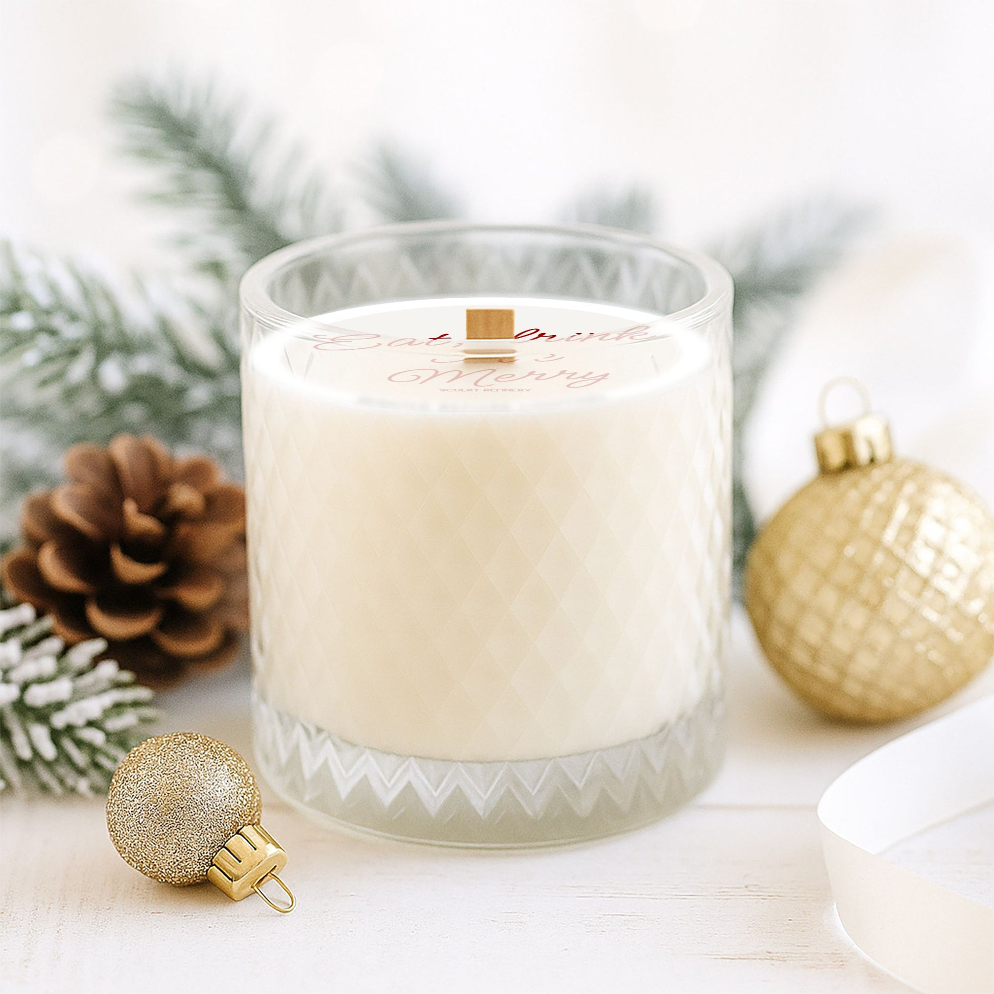 Embrace the warmth of the season with our Limited Edition Brilliant Candle, Eat, Drink & Be Merry, thoughtfully crafted in a substantial 15 oz size. Hand-poured into a stunning, textured glass vessel, it exudes a premium feel that enhances any space. Featuring a charming wooden crackling wick, this candle not only fills your home with delightful fragrances but also creates a soothing ambiance as it gently burns. With an impressive burn time of approximately 70 hours, it invites you to unwind and savor every moment. Choose from nine enchanting scents, including Fragrance Free, Cranberry Prosecco, Bohemian Rose, Coastal Cottage, Cashmere Vanilla, Mango Coconut, Lavender, Spa Day, and Fraser Fir, each designed to enrich your holiday experience. Perfect for Christmas or any cozy gathering, the Brilliant Candle by Sculpt Refinery is the ideal companion for creating memories that linger long after the flame has faded. Light it up and let the magic of winter 2025 fill your home with love and joy. Wax: Apricot Coconut Wax Wax Amount: 15 Ounces Burn Time: Approx 70 Hours Made in the USA
